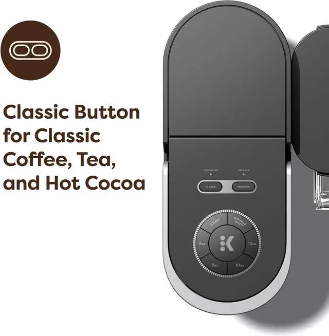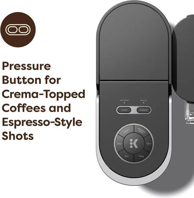 BREW IT YOUR WAY: Choose between Classic and Pressure settings to enjoy everything from cozy cocoa to bold espresso-style shots using any K-Cup pod.