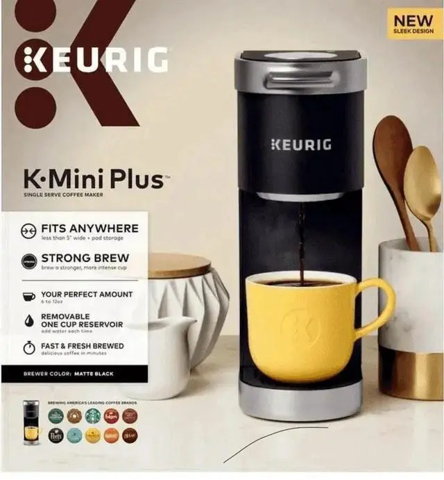 Keurig K Mini Plus, Keurig single serve coffee maker, K Cup pod coffee machine, compact coffee maker, small coffee maker, Keurig black coffee maker, single cup brewer, replacement Keurig machine, home coffee brewer