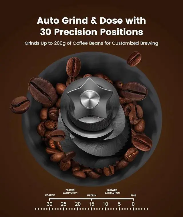 UPGRADED CLOG-CRUSHING GRIND PATHTired of grinder jams? Our upgraded system features a 20% wider polished chute + reinforced helical auger that EJECTS GROUNDS INSTANTLY even with oily dark roasts! Enjoy mess-free grinding and barista-perfect shots every time.