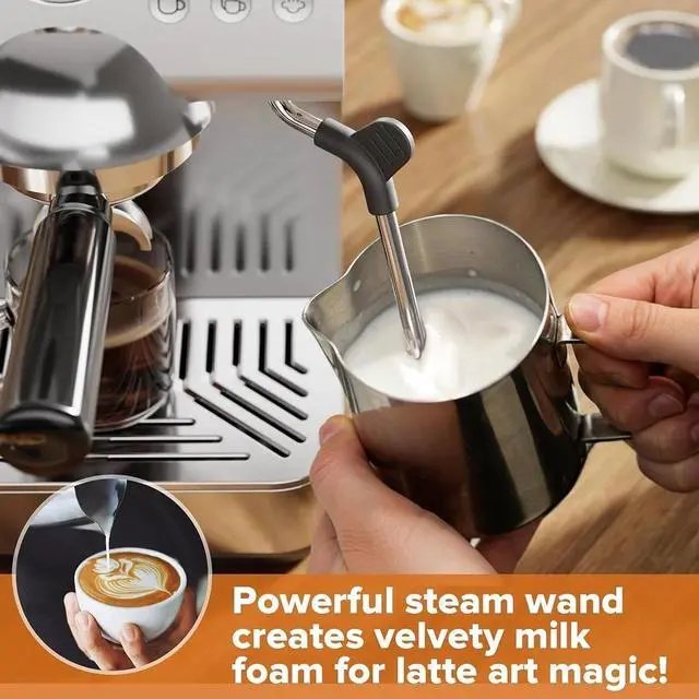 Professional Milk Frothing for Creative Latte Art The automatic coffee machine is equipped with a powerful steam wand that produces smooth and creamy milk foam. It allows you to easily make lattes, cappuccinos, and create creative latte art like hearts and clouds, adding a romantic touch to your coffee.