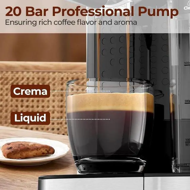 Professional-Grade Coffee Crafting:This semi-automatic espresso machine features a 20-bar pump system and 1350W powerful motor, delivering rich flavor and aroma. Easily prepare cappuccinos, lattes, and americanos at home or in the office. Its compact design combines ABS housing with stainless steel accents, making it both stylish for countertops and an ideal gift choice.