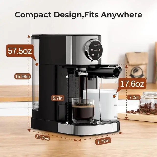 20 Bar Compact Espresso Machine with Steam Milk Frother,Professional Espresso Maker for Home and Office,1350W Touchscreen Cappuccino & Latte Machine,57oz Detachable Water Tank