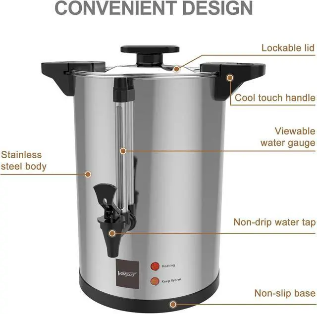 EASY OPERATION: The stainless steel coffee urn includes easy-to-read heat and keep-warm indicator light. The coffee dispenser also features keep-warm function and boil-dry protection.