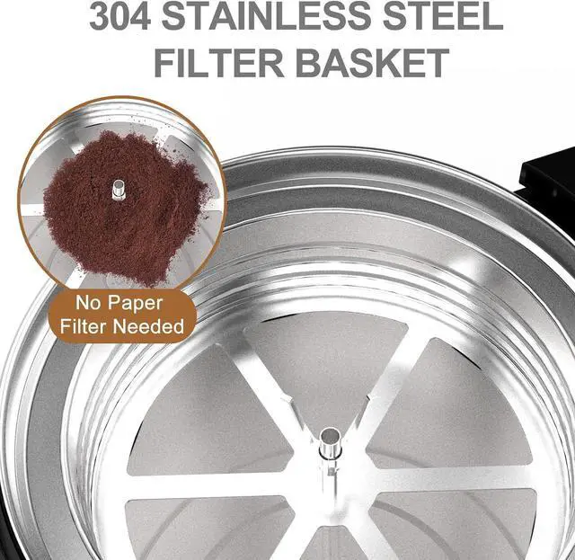 STAINLESS STEEL FILTER: No paper filter needed, ready for duty filter basket is durable and easy to clean. Wetting the filter before filling with coffee grounds can prevent grounds from slipping through.