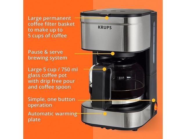 KRUPS Simply Brew Compact Filter Drip Coffee Maker, 5-Cup, Silver