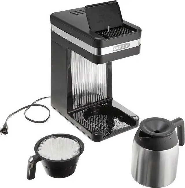 BREW A TRAVEL MUG OR A CARAFE - Brews 20oz to fill a travel mug in 2 minutes, or a full 50oz carafe in 4 minutes. TALLER FUNNEL - Our funnel is engineered to accommodate BUNN filters which are ¼ taller than other filters. This unique design allows for the quick flow of water and prevents overflow of coffee grounds.