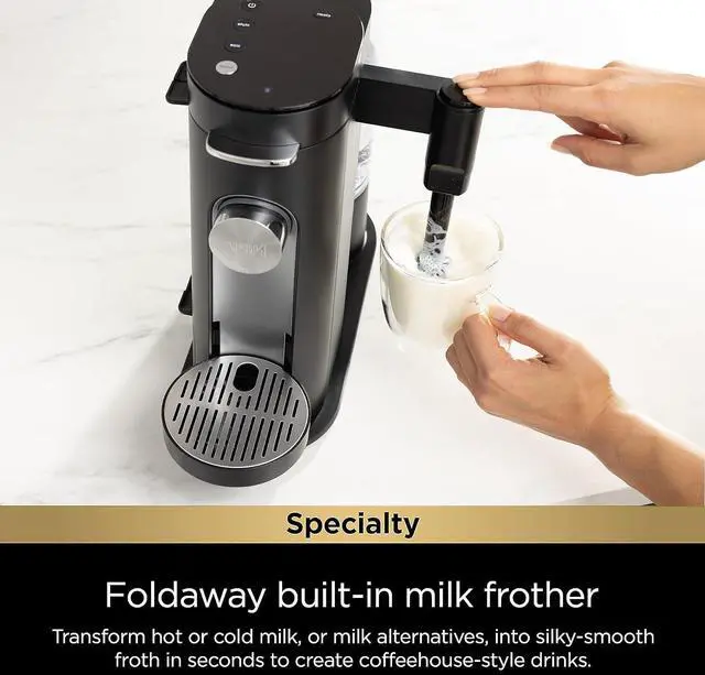 • BUILT-IN, FOLD-AWAY FROTHER: Turns hot or cold milk/milk alternative into silky-smooth froth. Removable for easy cleaning.