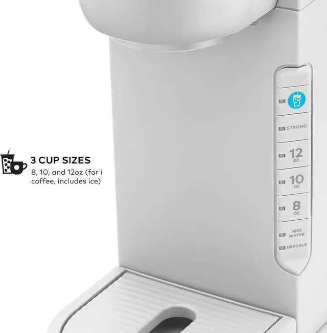ICED TUMBLER FRIENDLY: Removable drip tray accommodates tumblers and travel mugs up to 7 tall and holds a full accidental brew for easy cleanup.