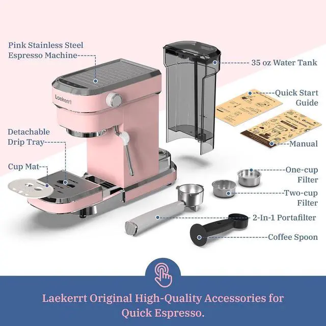 ARTWORK FOR YOUR KITCHEN After testing color and material for 200 times, we choose young and mild fashion Pink to make your espresso machine distinctive. We are your loyal company in the party with friends and family dinner. Laekerrt is a brand co-created with users, who does value suggestions and reviews from every customer. If you have any questions, feel free to contact us. We offer a one-year warranty and 24/7 customer service.