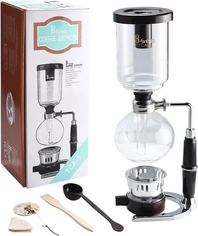 Everything you need: This coffee maker comes with own wood stirrer, 1x long coffee plastic spoon for coffee powder, 1 x cotton wick for the alcohol burner, and cloth filters for the coffee grounds.