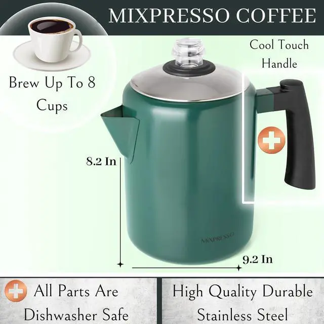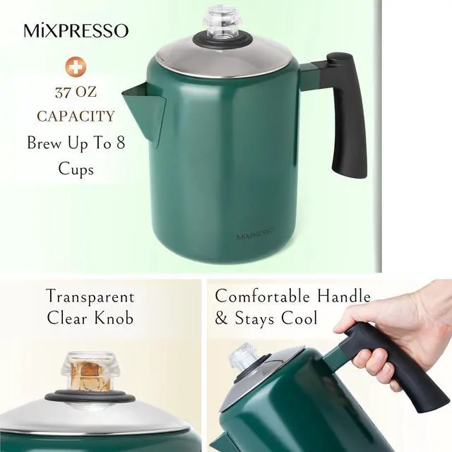 Customer Support & Gift-Ready: Mixpresso coffee percolators comes with a 1-year warranty and dedicated customer service for your peace of mind. Whether for birthdays, holidays, housewarmings, or coffee lovers in your life this classic stainless steel coffee pot makes a thoughtful and practical gift theyll use every day.
