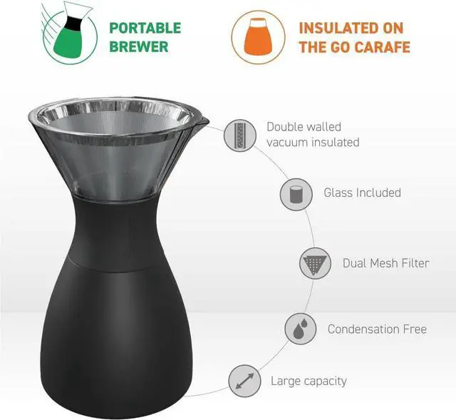 Advanced Temperature Retention - This pour-over coffee maker offers insulated, copper-lined double-walled technology that makes it heat resistant for easier gripping and helps keep coffee hot and fresh for an amazing 12 hours at a time! Perfect for early mornings or long stretches at work.