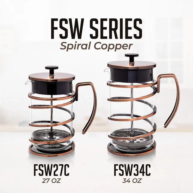 ELEGANT DESIGN Crafted from durable, heat-resistant borosilicate glass and stainless steel, this coffee press combines strength and elegance. The sturdy construction and robust metal handle ensure lasting durability, while its transparent body allows you to watch your coffee brew, adding a touch of sophistication to your morning routine and complementing any kitchen decor.