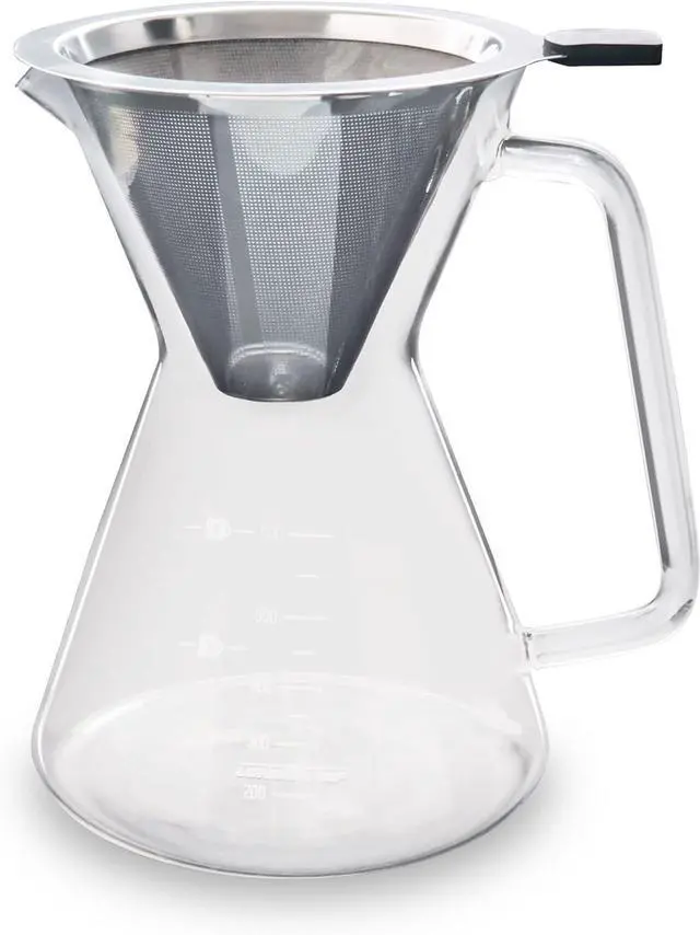 Included reusable stainless steel filter is eco-friendly and eliminates the need for paper coffee filters; Large filter size allows for the proper amount of grounds to be used for larger pours while leaving room for the bloom and addition of water without the fear of overflowing the filter