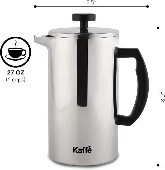 1 FRENCH PRESS = 4 COFFEES - The Kaffe french press has a 34oz capacity (1000 ml), which is enough to serve 4 cups of coffee. Impress your friends and family with a freshly brewed cup of coffee.