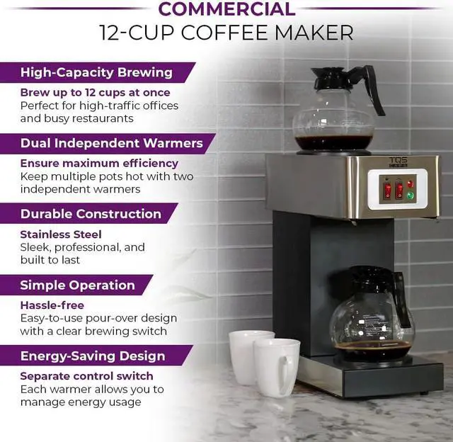 Superior Performance: Our industrial coffee maker offers unparalleled brewing efficiency, ensuring your cafe or office stays energized. This commercial coffee maker machine combines durability and speed, making it the perfect coffee maker for office environments and restaurants.