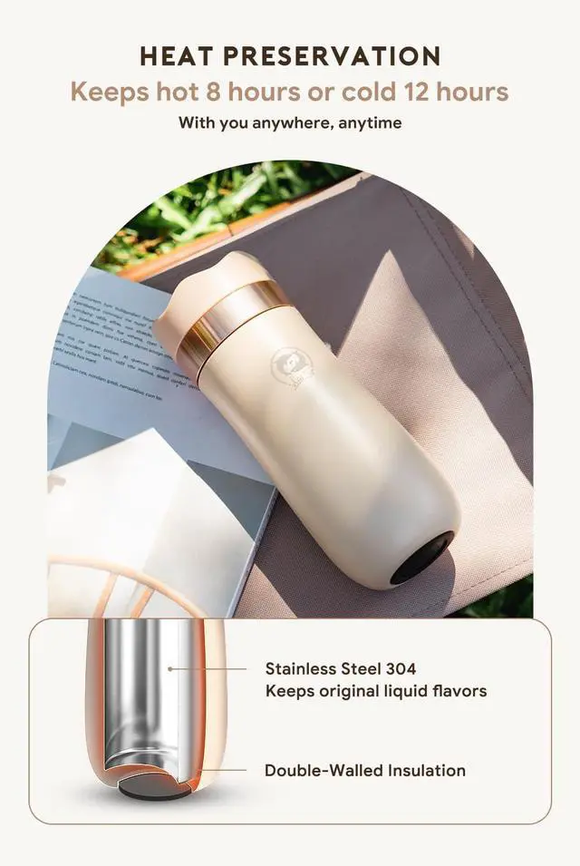 Heat preservation: Hot liquids stay warm for 8 hours/cold liquids stay chilled for 12 hours.