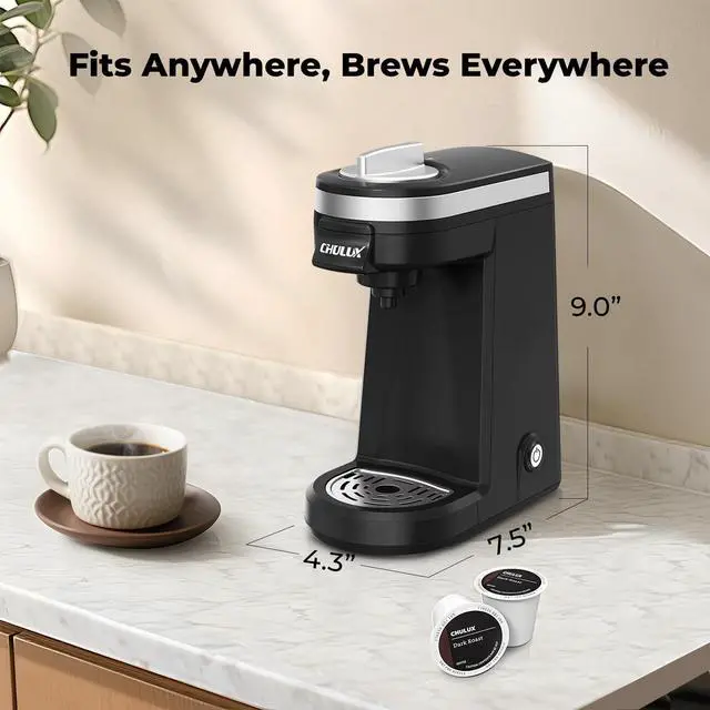 CHULUX Single Serve Coffee Maker is designed for one person.It offers you a fresh and hot 5-12 ounce cup of coffee in minutes at anytime you need it. This coffee machine makes having a morning cup or afternoon pick-me-up easier than ever. The stylish and compact structure is perfect for any space, such as small kitchens, dorm, meeting room or office. The coffee brewer comes with an illuminated brew switch and an automatic shut-off feature, which turns it off after the brewing cycle is complete.