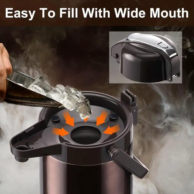 Upgraded Airpot Coffee Carafe with Double Pump 84oz/2.5L Stainless Steel Drink Dispenser for Hot/Cold Beverage with Lazy Susan Base, Coffee Termos Para Cafe for Hot Cocoa for Parties