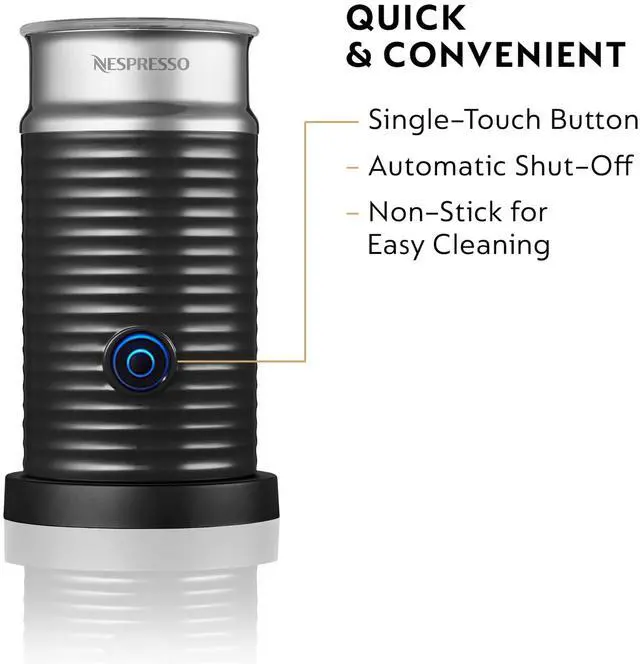 PERFORMANCE: Constructed from stainless steel and black plastic, this Nespresso milk frother quickly heats up milk to between 160 and 170 degrees Fahrenheit. Pairs great with Nespresso coffee makers!