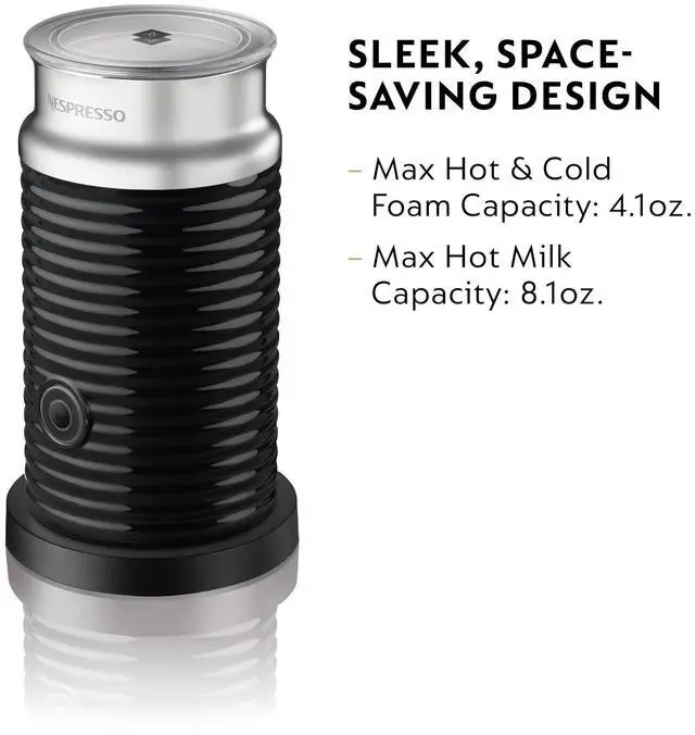 CAPACITY: The Nespresso milk frother has a maximum hot & cold milk froth capacity of 4.1 oz and a maximum hot milk capacity of