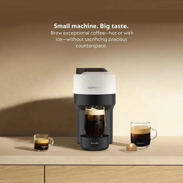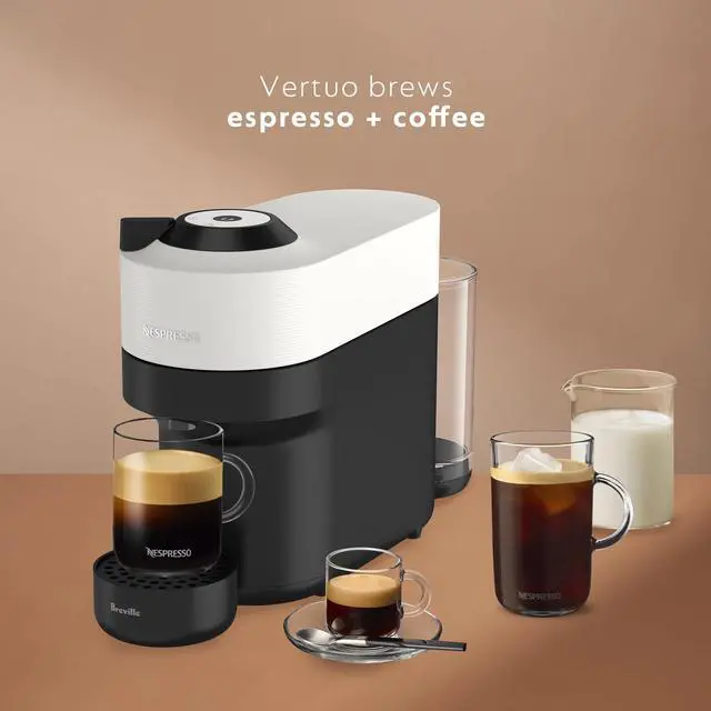 - SIGNATURE COFFEES AND ESPRESSOS: Vertuo Pop offers a variety of coffee formats in 4 sizes, including 5 oz and 8oz coffees, as well as single and double espressos brewed hot or over ice.