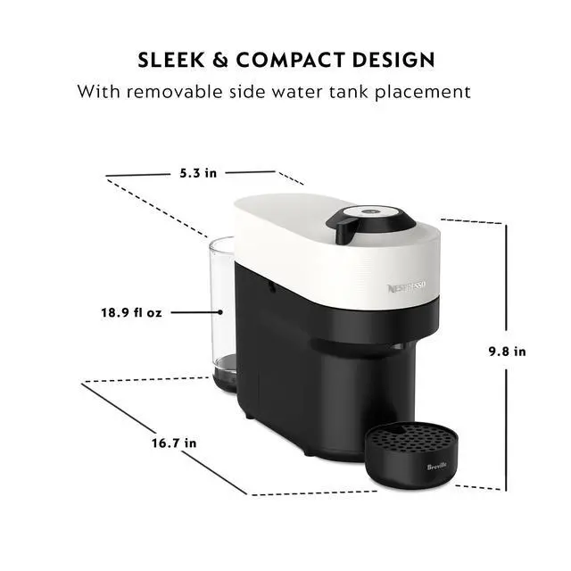 - COMPACT: Sleek Vertuo design with removable side water tank placement for easy access to fit tiny spaces.