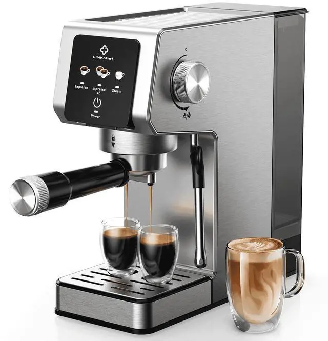Perfect Espresso at Home - Experience perfection with the LINKChef Espresso Machine, featuring an 20 Bar original Italian pump and a powerful 1300W instant thermo-block heating system for the ideal pressure, temperature, and volume to extract espresso flawlessly.