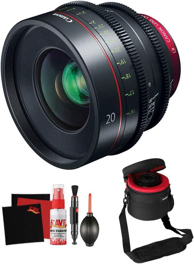 Mount) Professional Filmmaker Bundle Overview: Covers Full Frame & Super 35 Sensors T 1.5 Maximum Aperture 11-Blade Iris Breathing Minimized Virtually to Zero Dual Focus Markings Stepless 300' Focus Rotation Standard Cine Gears Same Gear Positions as Other CN-E ModelsThis Bundle Includes1 x Canon CN-E 20mm T 1.5 L F Cinema Prime Lens (EF Mount) 1 x Heavy Duty Padded Lens Case