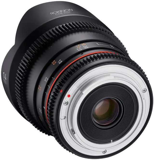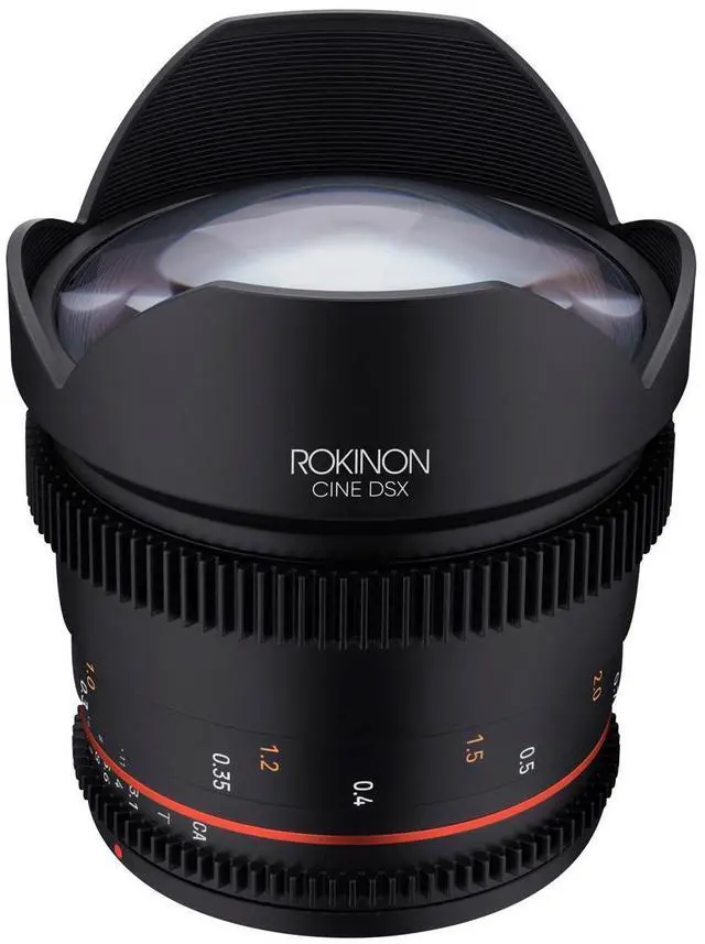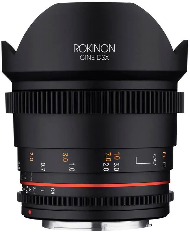 Just unveiled, the Rokinon Cine DSX 14mm T 3.1 lens for Micro Four Thirds (MFT) mount is a testament to superior craftsmanship and innovative design. This high-quality lens, sporting a sleek, compact design with a sophisticated matte black finish, is a versatile addition to any photographer or videographer's toolkit. The Rokinon Cine DSX 14mm T 3.1 lens is equipped with a rounded nine-blade aperture, a feature that contributes to producing smoother, more circular bokeh, enhancing the aesthetic quality of out-of-focus areas in your images. This lens is designed with a weather-sealed MFT mount, making it a durable choice for outdoor shoots in various weather conditions.