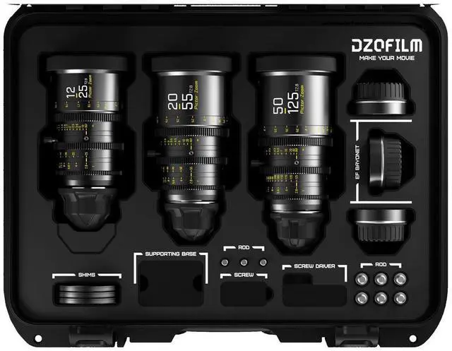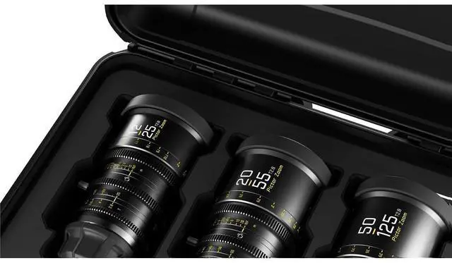 Take your filmmaking and cinematography to new heights with the Pictor Zoom 12-25/20-55/50-125mm T 2.8 Parfocal Cine 3-Lens Kit for PL Mount and Canon EF. This high-quality, professional lens kit from Dzofilm offers a versatile range of focal lengths, making it a perfect choice for a variety of shooting scenarios. The 12-25mm T 2.8 lens is a game-changer in the world of ultrawide-angle Super35 capture. With an aperture range from T 2.8 to T22, this lens ensures top-notch clarity throughout its zoom range. Its parfocal design consistently holds focus, revolutionizing your shoots.