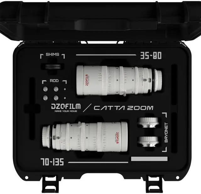 Take your cinematography to the next level with the Catta 35-80mm and 75-135mm T 2.9 Cine Lens Bundle for Sony E, elegantly finished in white. These high-performance lenses offer a wide focal length range, delivering authentic color reproduction and cinematic image quality. Designed to cover a full-frame sensor, they are compatible with the latest full-frame cameras, making them a versatile choice for both professional and amateur filmmakers. The parfocal design of these lenses ensures consistent focus throughout the zoom range, eliminating the need for constant refocusing during zooming in or out.