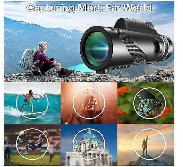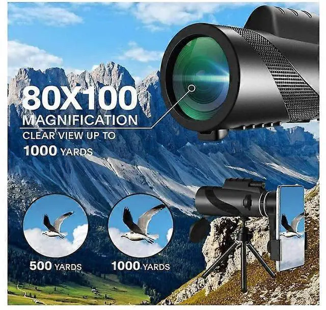 Experience crystal-clear long-range viewing with this 80X100 high-power monocular telescope. Ideal for outdoor enthusiasts, it delivers sharp, bright images for various activities.