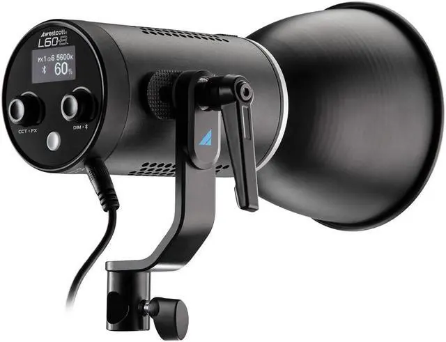 Weighing only 1.45 lbs. (0.7kg), the L60-Bs compact metal housing is durable and heat resistant. Two multi-function dials and an LCD digital display located on the back allow for precise brightness, color temperature, and lighting effects. Operate the L60-B using the included AC power adapter. Portable NP-F and D-Tap battery options (sold separately).