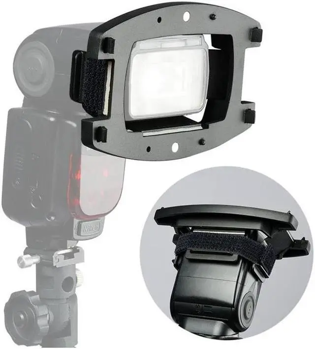 This Manfrotto universal adaptor will attach to most flash guns via a hook and loop tape locking feature. Once attached to a flash gun Strobo accessories such as Gel holders, Snoots, Honeycomb's and Barn Doors can be attached via a unique magnetic mount.