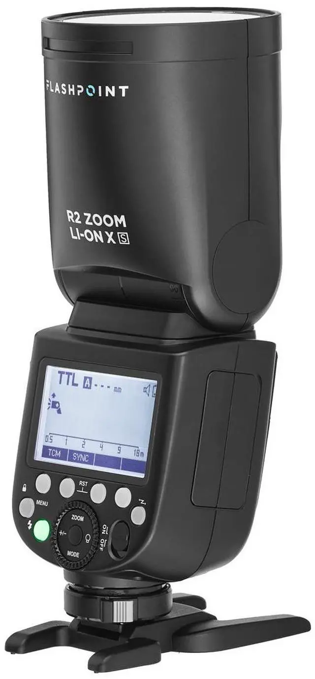 About The Zoom Li-Ion X R2 TTL Round Flash For Sony, Godox V1 SA revolutionary addition to your photography gear, the Flashpoint Zoom Li-on X TTL Speedlight for Sony, integrated with R2 Radio Transceiver, is a state-of-the-art on-camera speedlight that is fully compatible with the Sony TTL system. This innovative device delivers a natural, circular flash spread, a significant improvement over the conventional rectangular speedlights, providing a more pleasing and evenly distributed light performance.Powered by an interchangeable 7.2V/2600mAh Lithium Ion battery, this compact and lightweight speedlight can produce up to 480 full power shots, eliminating the need for external battery packs. The Zoom Li-on X TTL is not just a powerful device; it's also a versatile tool with integrated functions and features that make it a top choice for both professional and amateur photographers.The sleek design of the new Flashpoint Zoom Li-on X R2 Round Head conceals a plethora of capabilities that expand your shooting potential. Whether used as a wireless command center for the esteemed R2 System or as a standalone on-camera TTL flash, this device delivers a stunning, even distribution of flash power that will impress in any setting.The user-friendly menus, designed with simplicity and control in mind, allow you to focus on your subject rather than the technology. With direct group access, fast Lithium recycle speed, and two optical slave modes, this device is primed for action, delivering a beautiful flash that will leave you in awe.The metal shoe features a locking pin for added security, ensuring the device won't accidentally fall off the camera or mount. Remote power control via a Flashpoint R2 System Transmitter or R2 Family flash allows you to view and adjust your flash output as you shoot, even from more than 150 feet away, making it perfect for off-camera work.The flashhead rotates 330 degrees and tilts over 120 degrees, even backward, for bounce or modifier use. The head zooms automatically or manually from 28-105mm, ensuring necessary coverage without wasted spill. The Magnetic Modifier Mount, compatible with the Accessory Kit, allows for easy installation of various modifiers to control light spread, spill, drama, color tint, and mood.With a charge time of just 3.5 hours and a high-capacity 7.2V, 2600mAh, 18Wh, Lithium Ion battery, the Flashpoint Zoom Li-on X TTL Speedlight for Sony is a reliable, high-powered, fast-recycling flash that's sure to become a vital part of your photography equipment lineup. The R2 TTL Wireless Flash System, with its advanced 2.4GHz radio remote, adds camera TTL dedicated custom functions to your multi-flash experience, providing reliable channel triggering, group mode selectivity, and HSS with powerful signal strength and exceptional stability. The R2 family, compatible with Nikon, Canon, Fujifilm, Olympus, Panasonic, Pentax, and Sony, offers a range of devices from mini speedlights to monster monolights, each one a result of insight and refinement