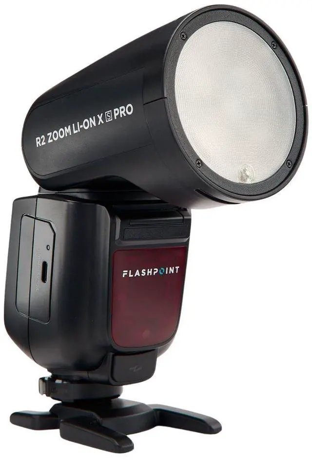 About The Zoom Li-Ion X PRO R2 TTL Round Flash for Olympus and Panasonic , Godox V1Pro OWith the Zoom Li-on X PRO R2 TTL On-Camera Round Speedlight Flash for Panasonic & Olympus (Godox V1 Pro), you can elevate your photography to new heights. This powerful and versatile speedlight offers a unique round flash spread, providing a more natural and even light distribution compared to traditional rectangular speedlights. Designed for both Olympus and Panasonic cameras, this high-quality flash is equipped with TTL (through-the-lens) technology. This innovative feature allows for precise exposure control, reducing the risk of overexposure or underexposure in challenging lighting conditions. The Zoom Li-on X PRO R2 is powered by a durable 7.2V/2980mAh Lithium Ion battery, providing up to 500 full power shots without the need for external packs. This feature not only enhances the flash's performance but also its portability, making it an ideal companion for photographers on the go. The round lens design of this speedlight creates soft, even, and artistically enhanced light effects, perfect for elevating your photographic creations. It also features a built-in fill flash, the SU-1, which faces your subject to deliver the softest and most detailed results. The Zoom Li-on X PRO R2 also boasts an ingenious glass face that prevents the flash from overheating, ensuring reliable performance even in demanding shooting conditions. For added power, it includes a dedicated BP-960 battery pack Lithium Power Pack port, which significantly speeds up the recycle and refresh rates. This compact and lightweight speedlight is part of the Flashpoint R2 Family of Flash, offering wireless connectivity and a full array of features, including variable zoom flash coverage. It also has an LED modeling bulb for color accuracy and a 9-stop range for maximum versatility. Whether you're capturing a wedding, conducting a portrait session, or setting up a multi-flash tabletop, the Zoom Li-on X PRO R2 is your go-to speedlight. It's not just a flash; it's a tool that can help you realize your creative vision. The Zoom Li-on X PRO R2 TTL On-Camera Round Speedlight Flash for Panasonic & Olympus (Godox V1 Pro) is more than just a flash; it's a game-changer in the world of photography. Experience the difference today