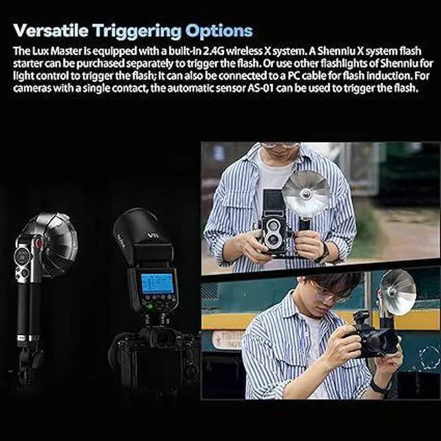 & Lux Master offers modern convenience with TTL auto flash, ensuring effortless and accurate flash exposure. Moreover, Lux Master also supports stroboscopic flash, front curtain sync and rear curtain sync, as well as High-Speed Sync.