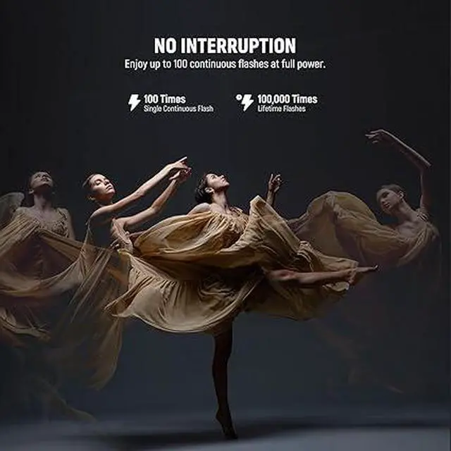 4. High Capacity & Fast Recycling The 7.2V/3000mAh lithium battery provides 600 full power flashes, 1.5s fast recycling time, and a 1/180-1/20000s flash duration. The battery is equipped with a Type C port for external charging, and can be charged in 2.5 hours using a 5V 2A USB charger (not included). NOTE: For optimal battery longevity, please fully charge the device before first use