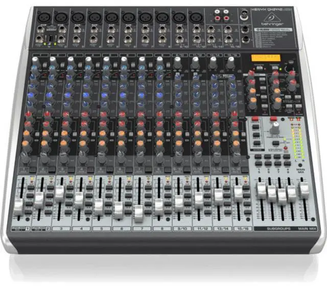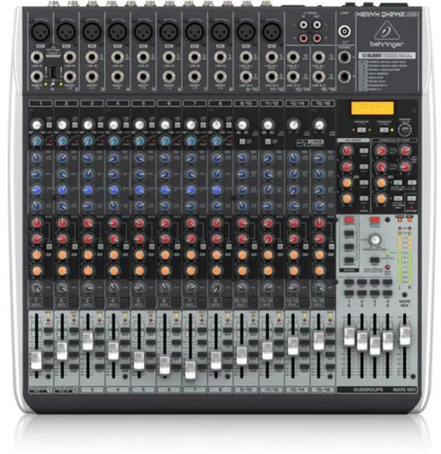 10 state-of-the-art, XENYX-powered mic inputs, 4 stereo channels, 4 Aux Sends and 4 stereo Aux Returns, and the easy-to-use "one knob" compressors, Inserts, and direct Outputs on each of the mono channels. Other features available exclusive to the QX2442USB are: 4 subgroups for mixing versatility; Main Inserts (the ideal path for connecting graphic equalizers or compressor/limiters); 8 Direct Outs and Sub Outs for analog recording purposes.