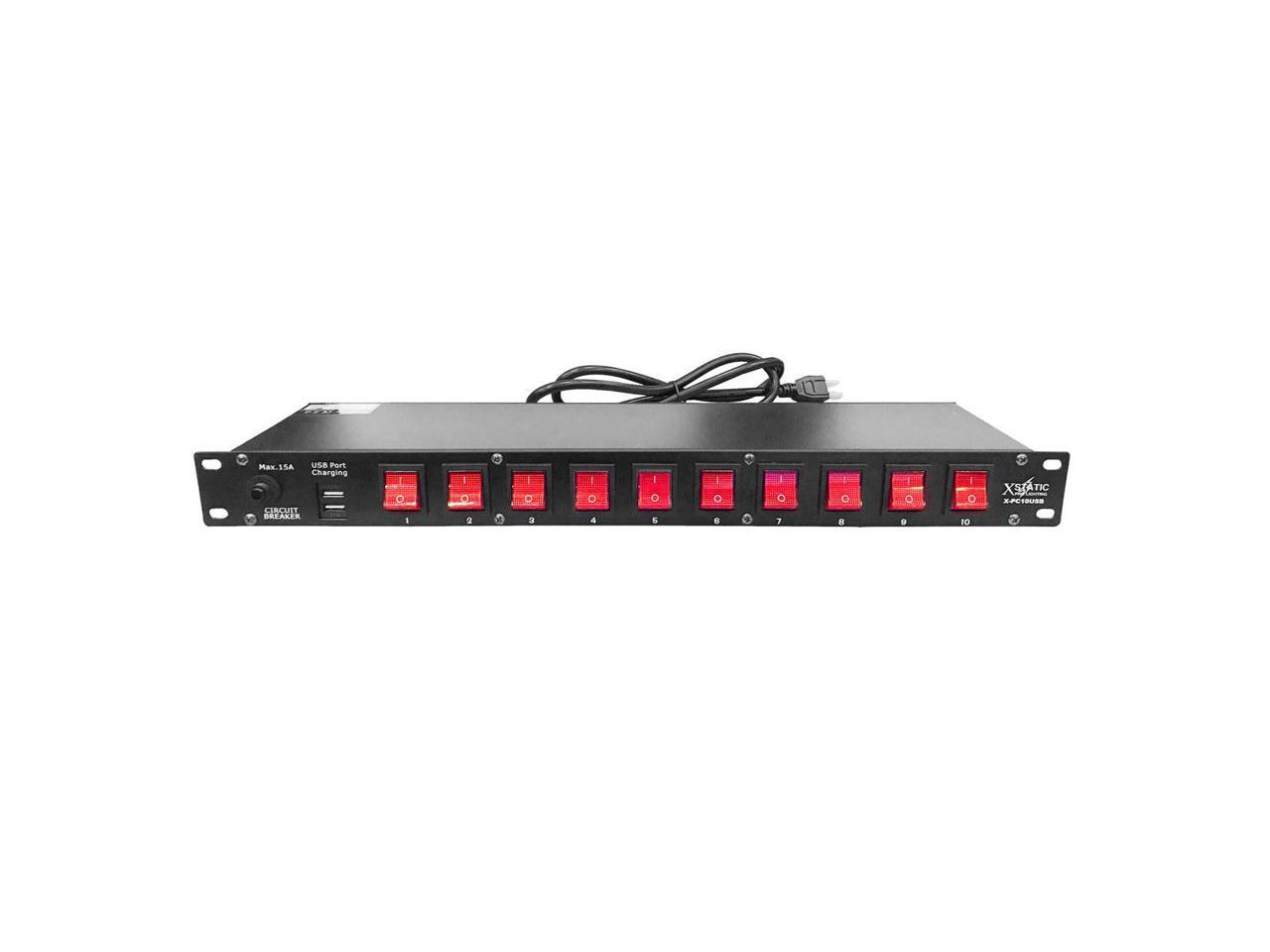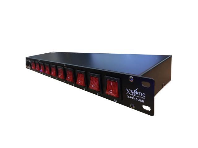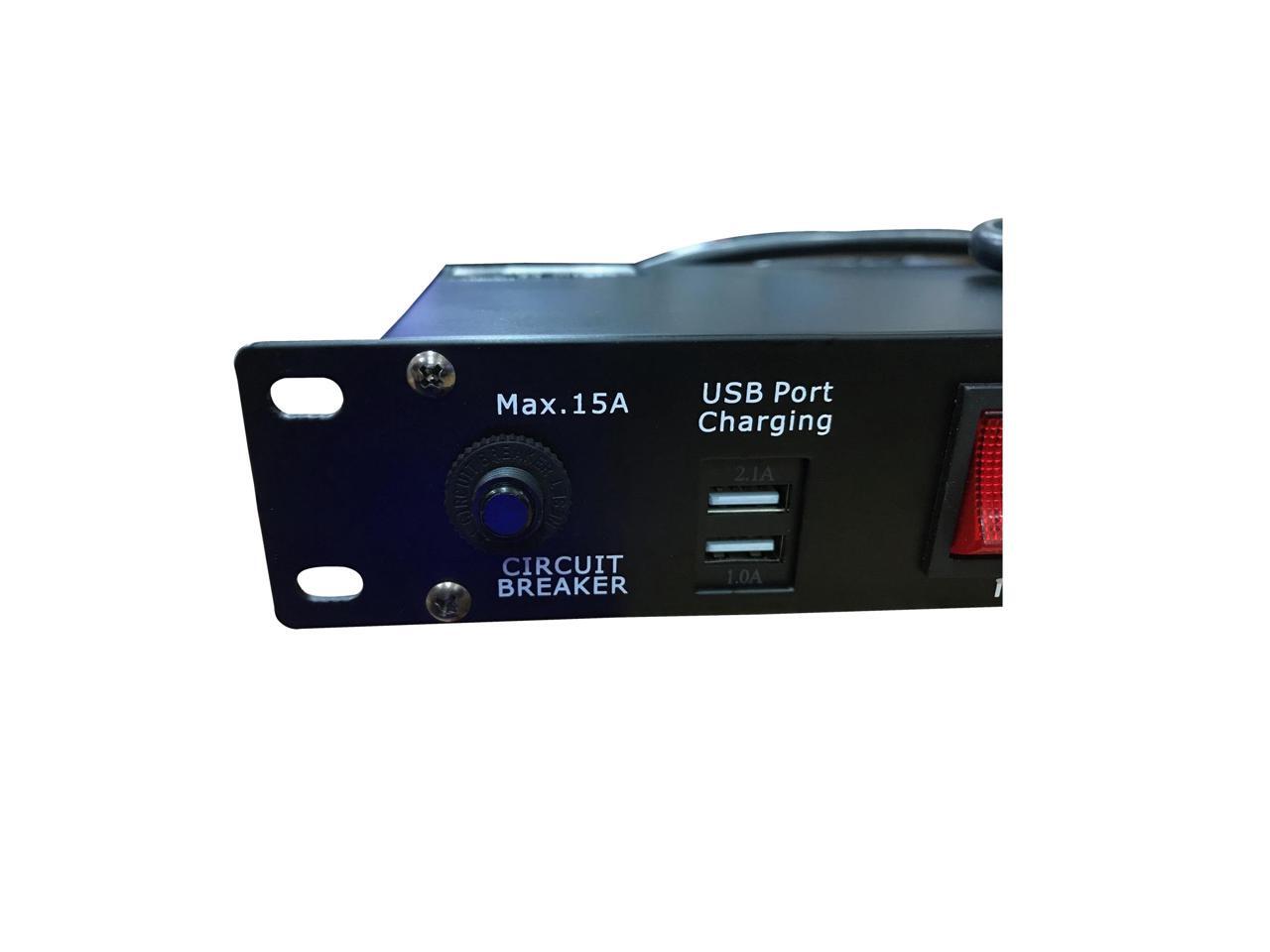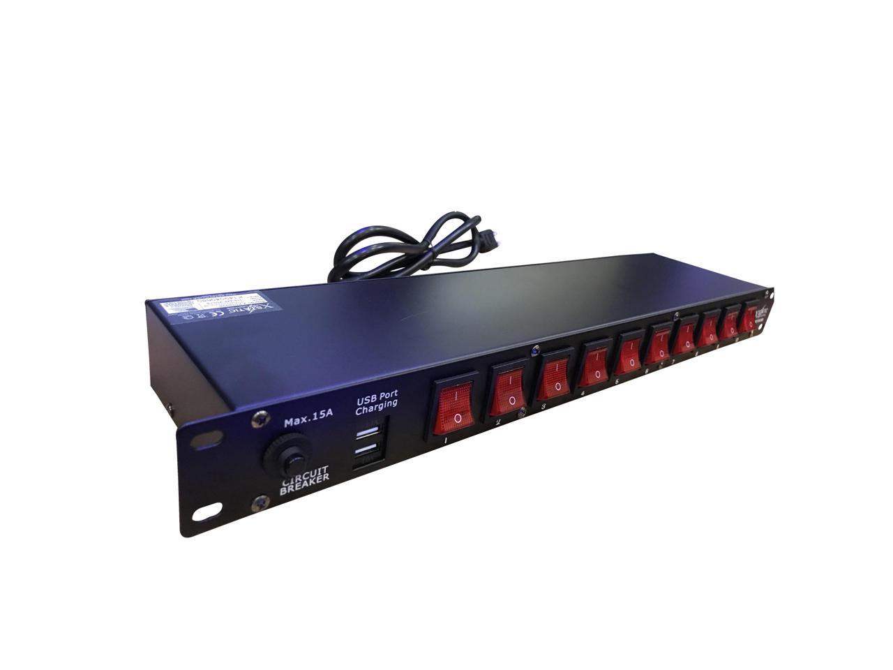 10 Plug Rack Mount Power Distribution Switch With 2 USB Charging Ports
