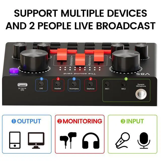 | Included Components | Double-Layer Pop Filter, Adjustable Suspension Scissor Arm Stand, Shock Mount, Anti-Wind Foam Cap, Earphone, Power Cable, V8 Live Sound Card |