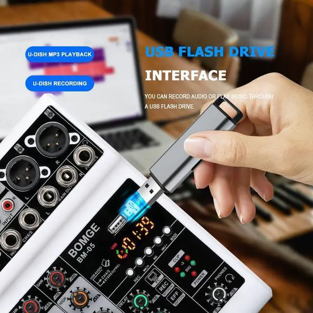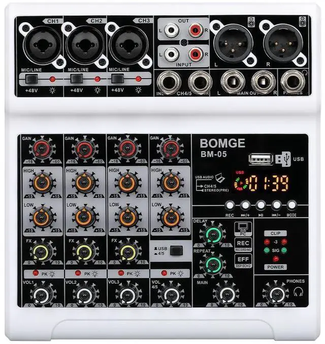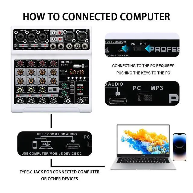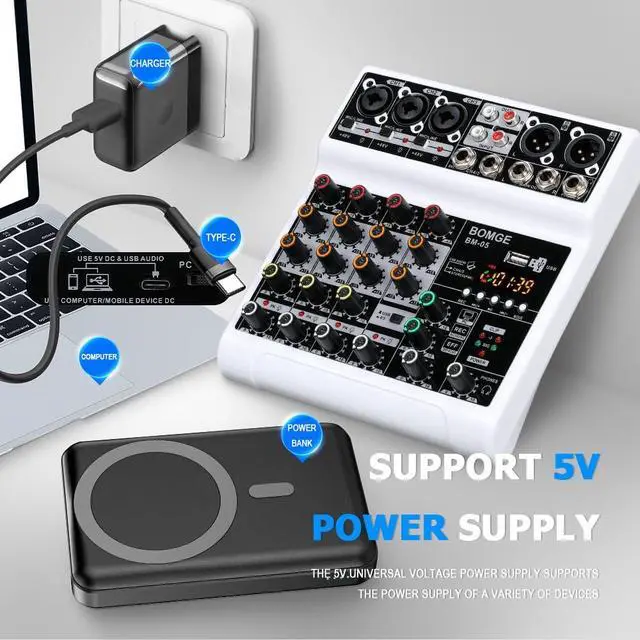 Mic Line + Stereo Line Inputs-- The Mini Mixing Console is great for multiple devices connectivity.2 XLR Lines input jack to connect mics or guitar, 1 pair L/R 6.35mm and 1 pair L/R RCA stereo inputs to connect CD plays/keyboard/computer. Plus 1 pair L/R 6.35mm Main output to connect Active Speakers/Power Amplifier/Active sound system/Trolley Active Speaker.(Note: It is not possible to connect an output device with Bluetooth, and it can only be compatible with active)
