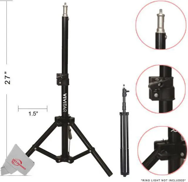 Specifically designed for shooting small objects, holding reflectors, or supporting an up light for backgrounds, the 27 Tabletop Light Stand from Vivitar is a miniaturized version of a full-sized stand. Its a vlogger's favorite, and safe for holding ring lights and smartphones with it's solid leg locking system.