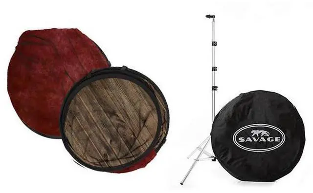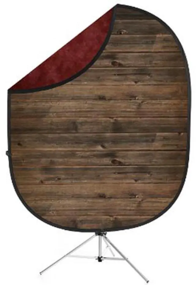 With the Savage 5x7' Collapsible Backdrop with 8' Aluminum Stand, you can effortlessly transform your photography setup from rustic to stylish. This dual-sided backdrop features a realistic, worn wood print on one side, perfect for adding a rustic charm to your photos. Flip it over to reveal a vibrant, beautifully dyed red finish, ideal for creating a bold, professional look. This versatile backdrop allows photographers to switch between different styles within a single photo shoot, making it an invaluable tool for both studio and on-location shoots. Constructed from high-quality, non-reflective cotton, this backdrop effectively eliminates glare, ensuring your photos always look their best.