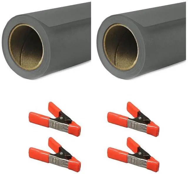 Savage 53"x36' Widetone Seamless Background Paper, Thunder Gray, 2-Pack, Bundle with 4x 1-1/4x1" Steel Spring Orange Clamp