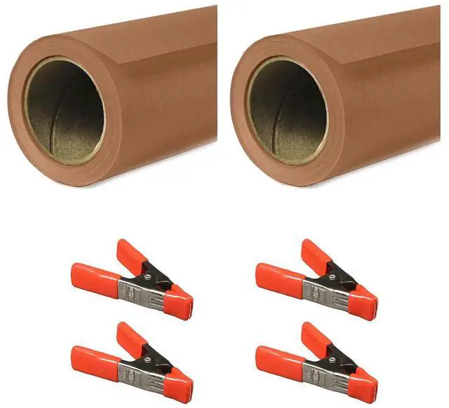 Savage 26"x36' Widetone Seamless Background Paper, Cocoa, 2-Pack, Bundle with 4x 1-1/4x1" Steel Spring Orange Clamp