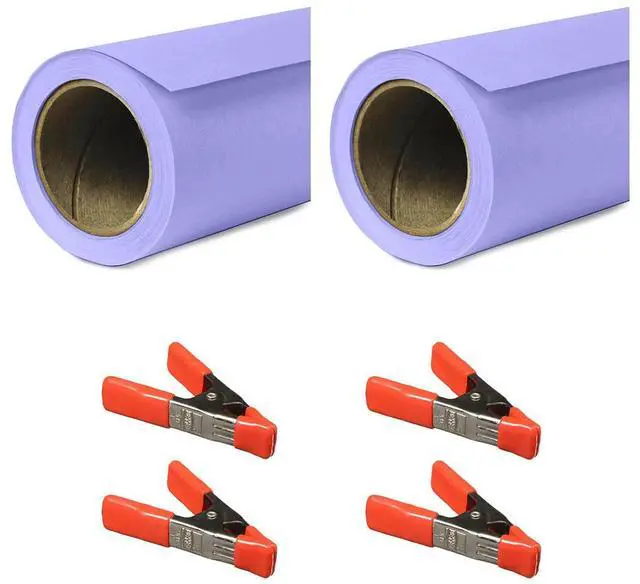 Savage 53"x18' Widetone Seamless Background Paper, Orchid, 2-Pack, Bundle with 4x 1-1/4x1" Steel Spring Clamp, Orange