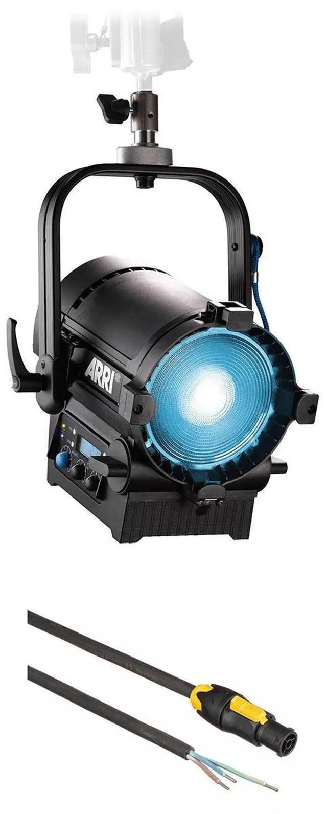 Focusing is neither tedious nor time-consuming; full flood-to-spot can be achieved in only three turns. Sliding Stirrup The ARRI sliding stirrup design enables precise adjustment of the fixture's center of gravity, to compensate for front-end accessories. It also creates the option of pulling the fixture back and reducing its hanging height. YokeWith an extremely slim profile, the extruded aluminum yoke provides high strength without added weight. An optional pole-operated yoke allows full operation of pan, tilt and focus from the floor and is therefore a popular choice for many studios. Tilt LockThe high strength tilt lock provides extremely secure locking, eliminating movement and slippage and ensuring that the fixtures will stay where you put them. Pole OperationOptional pole operation is a popular choice for many broadcast studios, enabling fast and efficient adjustment of pan, tilt and focus without the need for ladders or lifts. DMX ControlFor broadcast studios, remote fixture control is of paramount importance, and all functions of the L7 are controllable through DMX. The L7 is also fully RDM compatible, providing bi-directional feedback and reporting of parameters including system status; hours on the light engine; and current DMX settings (with the ability to remotely assign and address all fixtures in a DMX network).