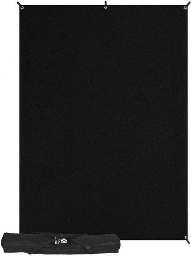 A quintessential tool for any photographer or videographer, the 5 x 7' Black X-Drop Backdrop Kit with X-Drop Stand and Travel Case offers a professional-grade backdrop solution that is both durable and versatile. Ideal for creating polished portraits, detailed product photography, and enhancing video conferencing setups, this backdrop kit is designed to deliver a seamless and high-quality visual experience. Crafted with precision, the backdrop features strategically placed grommets along the top and bottom edges, ensuring easy hanging and a taut, wrinkle-free presentation. The inclusion of a 2" pole pocket allows for quick setup with the accompanying free-standing X-Drop stand, which can be adjusted to the perfect height for your photographic needs.